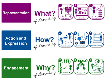 "For no child to be excluded from—or left behind by—the general curriculum, the curriculum itself must be examined and re-designed from a fresh perspective, much in the same way that buildings, environments, and products were critically examined by the original advocates of universal design in architecture resulting in important and lasting changes in building standards" (Jackson, 2010). Universal Design for Learning (UDL) calls for teachers to be flexible in their requirements and expectations at three stages of the learning process. Initially diverse students require that information is presented in diverse ways with multiple means of representation. Secondly, students need differentiated options for how they respond to curriculum content and multiple ways to express what they know. Finally, teachers need to find multiple ways to motivate and engage students so that they are motivated to learn. For more information about what UDL is and why it is necessary for student success, visit: